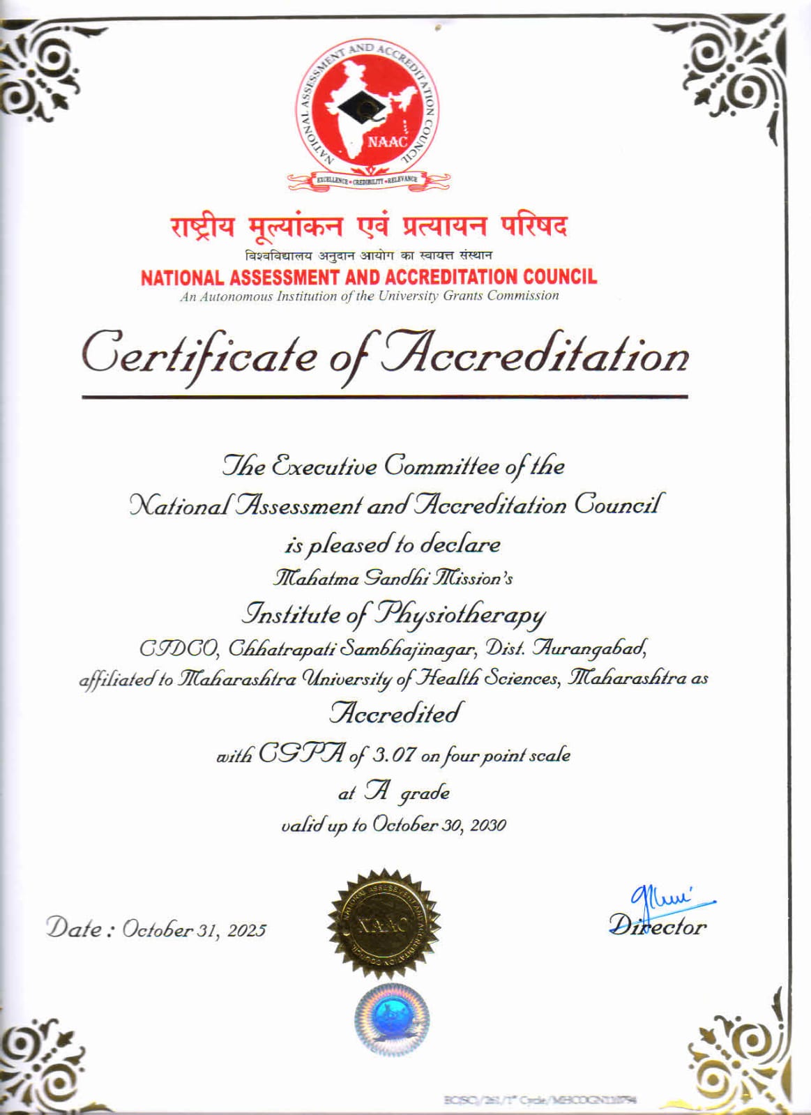 NAAC Grade 'A' and CGPA 3.07