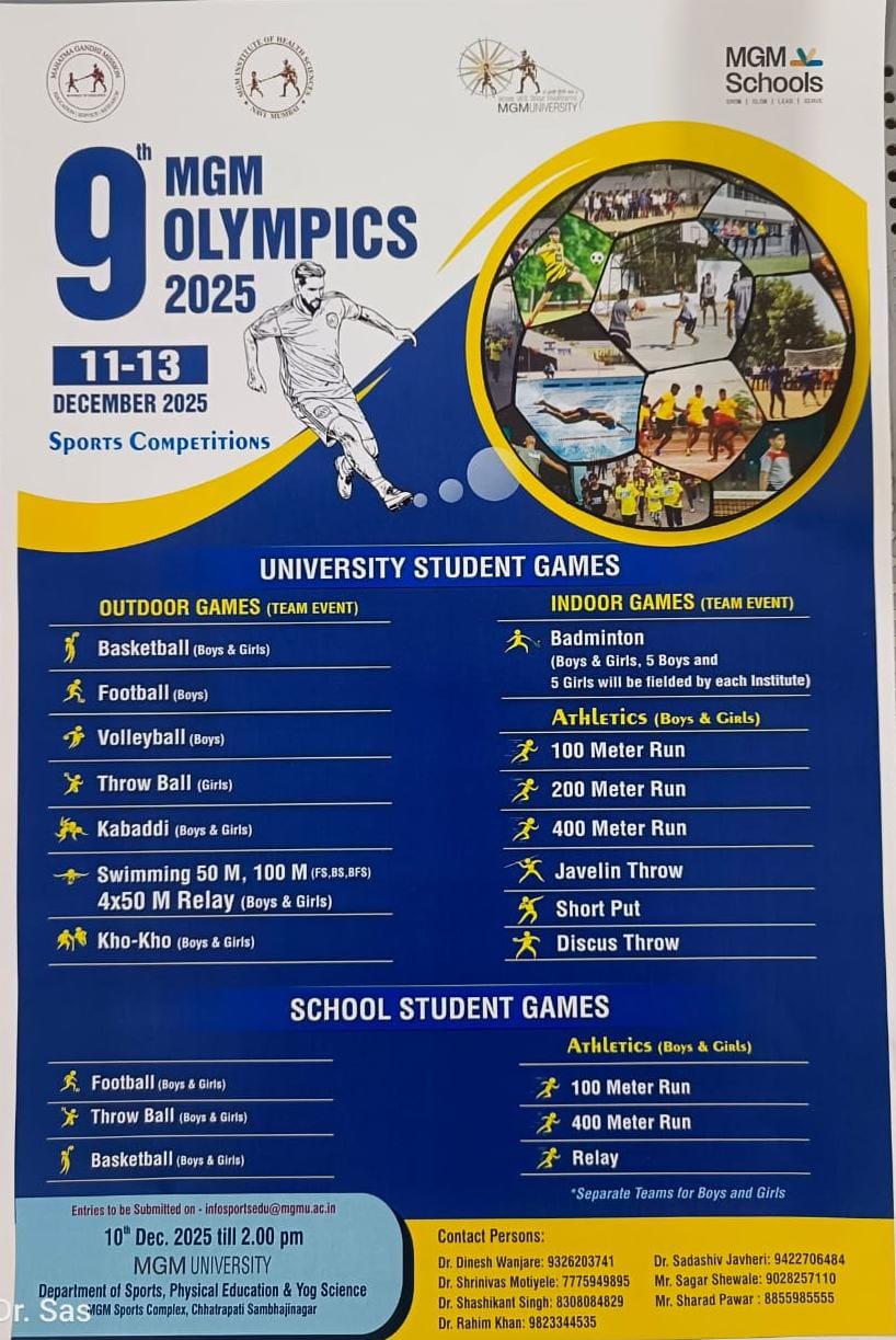 Mahatma Gandhi Mission was established in the year 1982 at Nanded (Maharashtra) to impart quality education and offer affordable and comprehensive health care to all the sections of the society. Today Mahatma Gandhi Mission has been recognized as one of the prestigious and premier educational institution with campuses in Aurangabad, Navi Mumbai, Parbhani, Nanded and Noida (Uttar Pradesh). MGM is registered as a charitable trust under the Society’s Registration Act 1860 on 20th December 1982 and also registered under Bombay Public Trusts Act, 1950 on 30th April 1983. MGM has blazed a trail of academic excellence and the MGM alumni success stories from across the globe is a real testimonial. The vision of MGM has always been futuristic with the Gandhian ideology of serving all the sections of society and reaching the unreached. In the incredible journey of forty years, MGM always strives hard to empower the people and all its stakeholders in all its endeavours to make them self-reliant and self-content. The core activity of MGM revolves around Education, Healthcare, Research, Cultural heritage, Social service, Environment, Gandhian Philosophy, and wellness & sports.